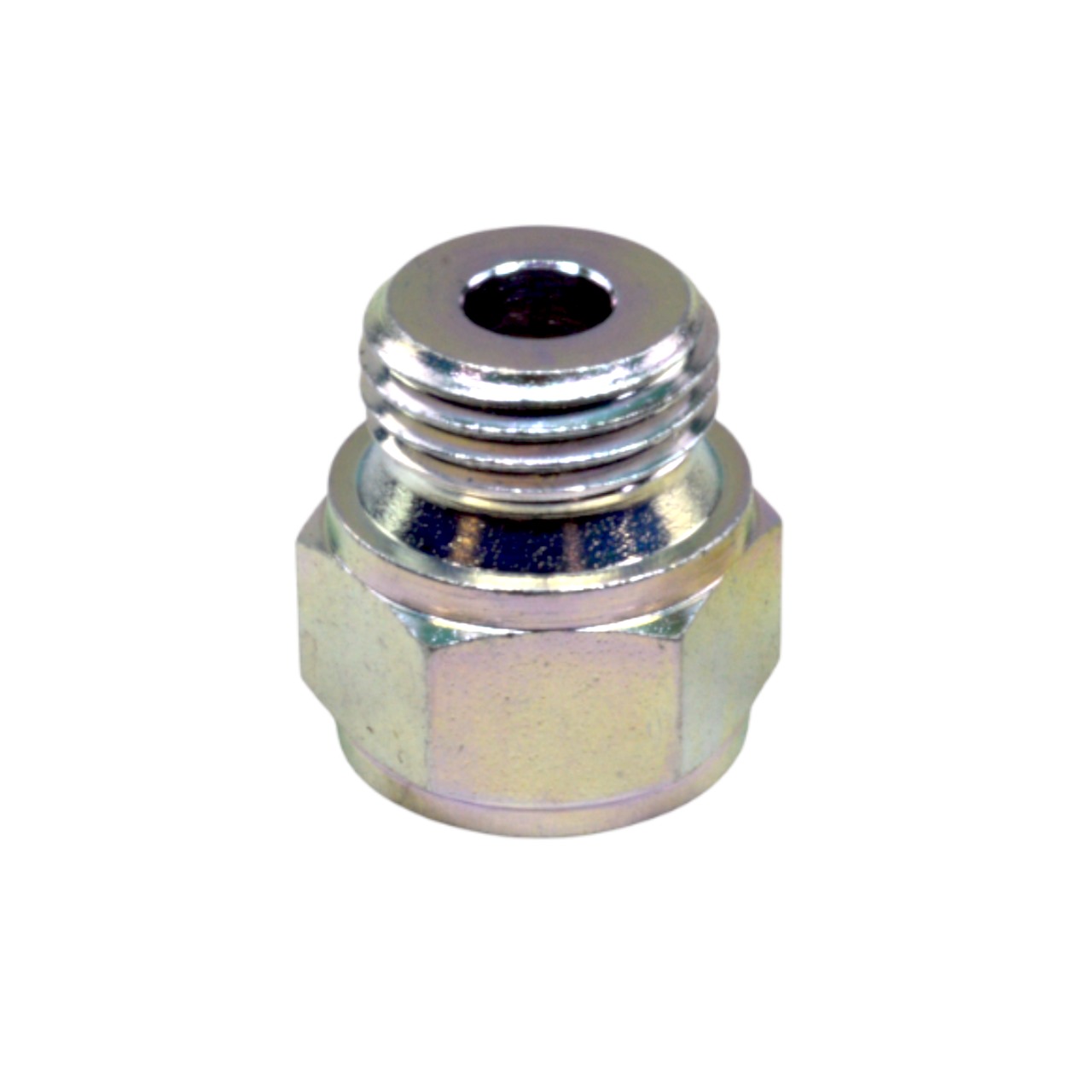 Adapter Verschraubung M16 x 1,5 Außengewinde auf M 14 x 1,5 Innengewinde mit 8 mm Durchgangsbohrung. Für Aufnahme des originalen Öldruckschalters oder Öldruckgebers in Verbindung des T-Stücks (Art. Nr.: 1162431).